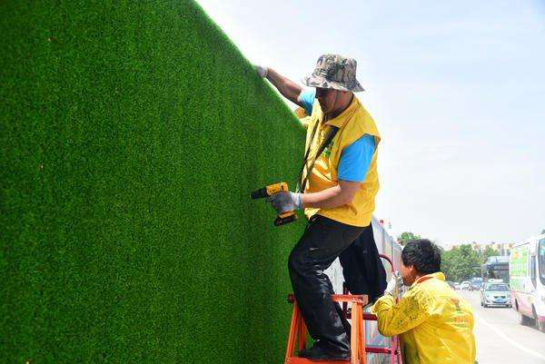 工地人造草坪圍擋相對的施工也很方便,對于綠化草坪常見的地面鋪裝施工,只需要使用人造草坪鋪裝專用膠水打膠固定在地面上就可以了。然而當綠化草坪鋪裝在工地圍擋等一些立面墻的時候,鋪設人造草坪時需要用槍釘固定,這樣也會比較牢,因為人造草坪是有一定的重量的,越是一些質量好的草坪相對的草絲的磅重高,草絲就會粗一些,所以一定要用槍釘固定的勞一些是必要的。