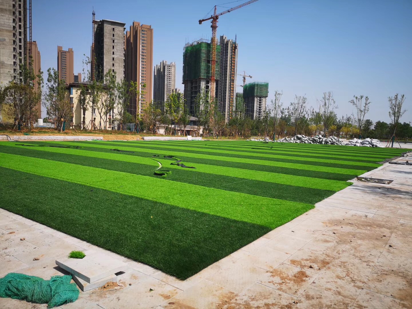 場地從舊草坪鏟除開始,會(huì)留下很多垃圾和廢料,在鋪裝新的人造草坪之前,必須清理好場地基礎(chǔ),把廢舊輔料和垃圾清理干凈,如果現(xiàn)場可以用水沖洗一遍的話,可以更好的清理干凈場地上面的浮土灰塵,這樣的場地更整潔干凈,對進(jìn)一步的鋪裝人造草坪做好鋪墊。