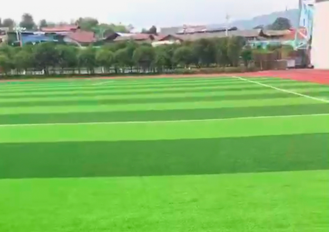 河南省新鄉(xiāng)市延津縣某小學(xué)足球場(chǎng)選用的是綠達(dá)LDMZ140(免充砂足球草),這款草的分特?cái)?shù)14000,草高30mm,密度21000,顏色深綠+果綠,底布PP+網(wǎng)格。